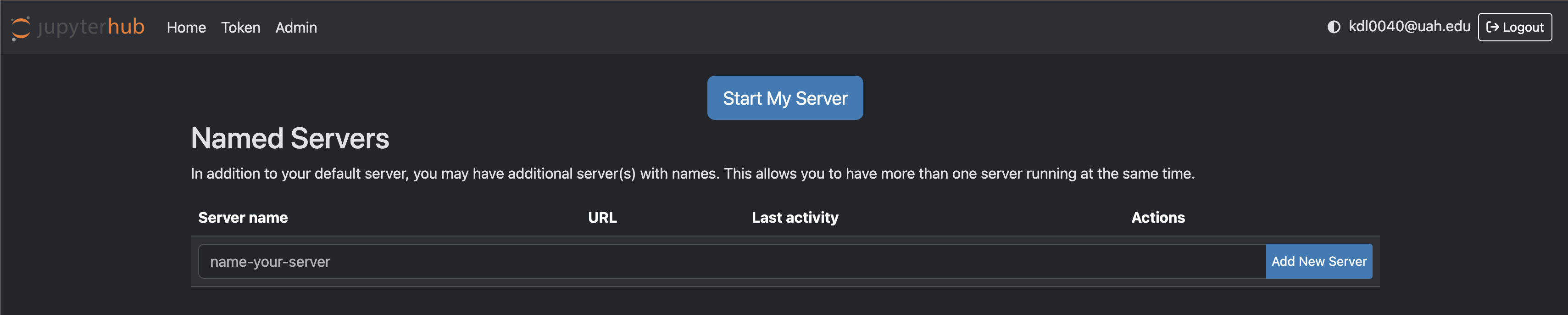 Click the Start button to launch your JupyterHub server with the custom Disasters image.