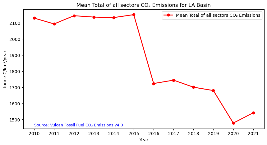 In this notebook we have successfully explored, analyzed, and visualized the STAC collection for Vulcan Fossil Fuel CO₂ Emissions, Version 4 dataset.